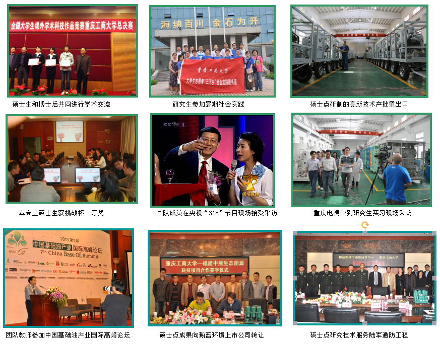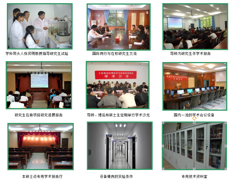 硕士点依托教育部废油资源化技术与装备工程研究中心、重庆高校油处理装备与绿色化工技术工程研究中心、重庆高校废油资源化技术与装备创新团队、资源与环境博士后工作站,本专业现有教师30人,其中高级职称20人,具有博士或硕士学位21人,有全国杰出专业技术人才1人,国务院特贴专家3人、市级学术带头人3人,二级教授3人。通过教育部科研平台的依托,在西南地区拥有本领域最精良的研究手段,现有教学科研仪器2700多万元,525台(套)。